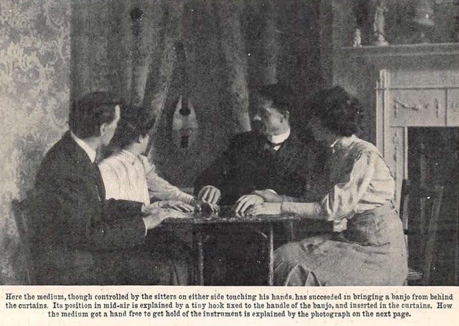 Wikipedia page for Séance: https://en.wikipedia.org/wiki/S%C3%A9ance