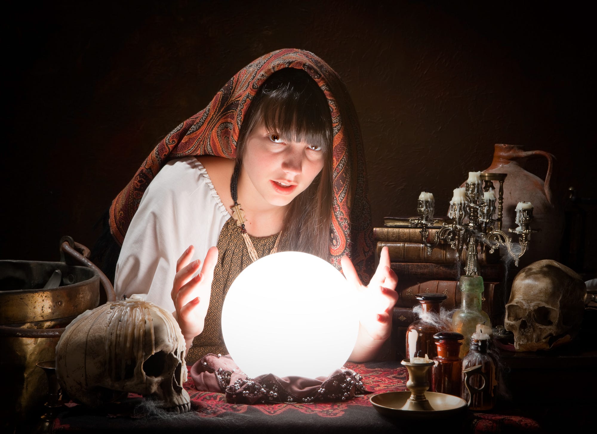 Featured image: Young fortune-teller reading the future in a crystal ball. ( Anneka / Shutterstock)